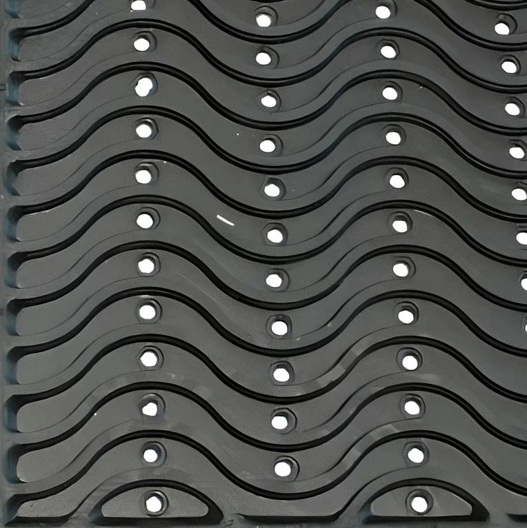Хвилястий малюнок не просто для краси. Завдяки рельєфу килимок краще очищає взуття, а ще виглядає сучасно. Такий гумовий килимок під двері не псує вигляд входу — навпаки, додає охайності.