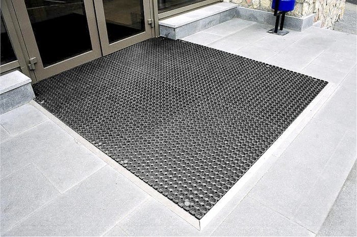 Гумовий килимок використовується для ефективного запобігання попаданню сміття та бруду в приміщення, крім того, завдяки гумовій основі, килимок популярний через свої протиковзкі функції. У зимовий час, коли плитка на ганку та біля входу стає слизькою, купивши у нас килимок – Ви дбаєте про своїх відвідувачів та клієнтів.